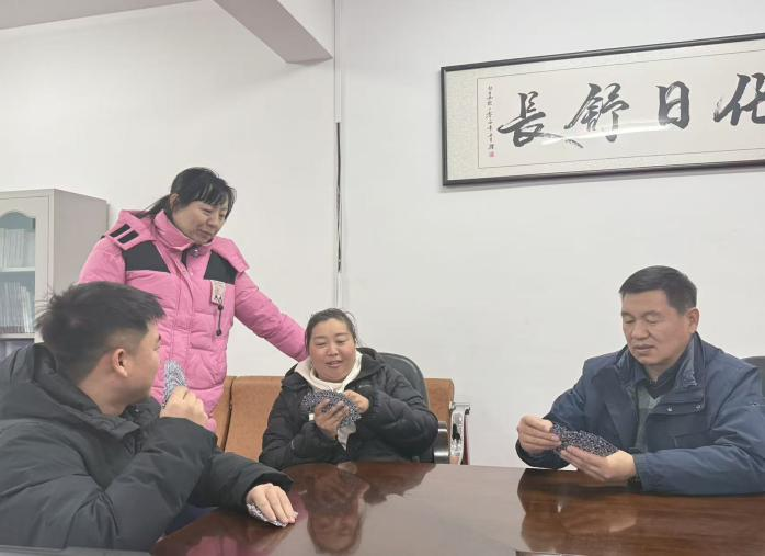 比赛采用淘汰制与积分制相结合的方式,遵循专业竞赛规则,同时融入趣味元素,让大家在轻松氛围中感受运动快乐。赛场上,各项目竞争精彩迭出。乒乓球台前,选手们挥拍疾攻、灵巧防守,银球在球网间来回穿梭,时而扣杀凌厉,时而轻吊巧接,引得场边观众阵阵喝彩。象棋与五子棋赛场则别有一番景致,选手们凝神静思、沉着落子,在楚河汉界与棋盘格中斗智斗勇,每一步都暗藏玄机,展现了缜密的思维与沉稳的心态。跳棋比赛中,选手们灵活规划路线,棋子在棋盘上跳跃前行,紧张有序中不失趣味。最具团队氛围的斗地主团体赛更是热闹非凡。3人一组的参赛队伍默契配合,时而低声商讨策略,时而果断出牌,每一轮积分的增减都牵动着队员们的心。