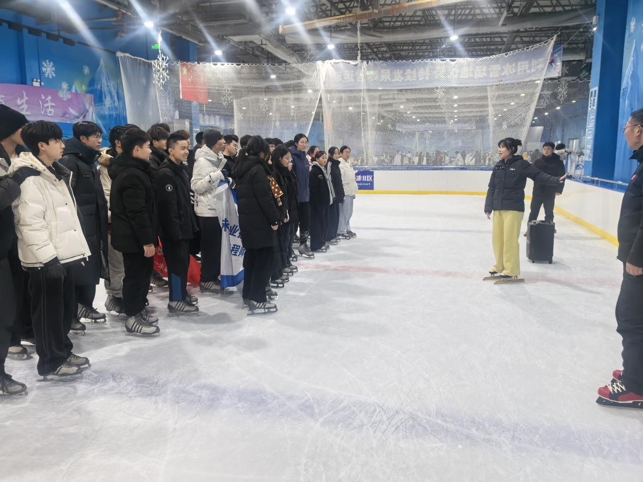 在长春积极筹备2027年第33届世界大学生冬季运动会的热潮中,为深入贯彻落实习近平总书记关于“冰天雪地也是金山银山”“带动三亿人参与冰雪运动”的重要指示精神,将冰雪运动育人实践深度融入学校“三全育人”格局,12月4日下午,体育教研部联合未来产业技术创新研究院,以“滑向卓越,明德同行”为主题,共同策划并成功举办了一堂别开生面的“奥运冠军冰上授课专场”特色滑冰课,短道速滑奥运冠军周洋应邀为明德班学子授课,学校党委学生工作部、体育教研部相关负责人到场参与活动。