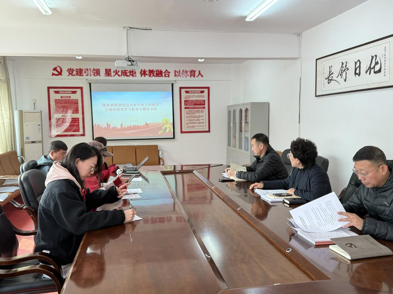 3月25日,体育教研部党总支召开树立和践行正确政绩观专题读书班暨支委扩大会,深入学习贯彻习近平总书记关于树立和践行正确政绩观的重要论述,全面落实学校党委关于学习教育的部署要求。党总支书记主持会议,全体支委成员参加会议。