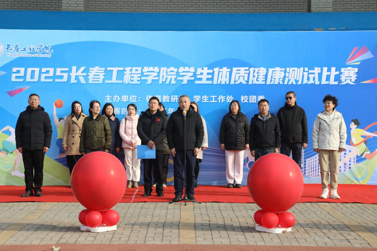 11月12日午后,长春工程学院湖西校区运动场暖意融融,2025年学生体质健康测试比赛正式启幕。本次比赛由体育教研部、党委学生工作处和校团委联合主办,校医院及全校各二级教学单位协办,全校十六个教学单位均参与其中。校党委副书记王胜孝、副校长张邦成等校领导出席了开幕式,与师生一同见证这一青春盛会。